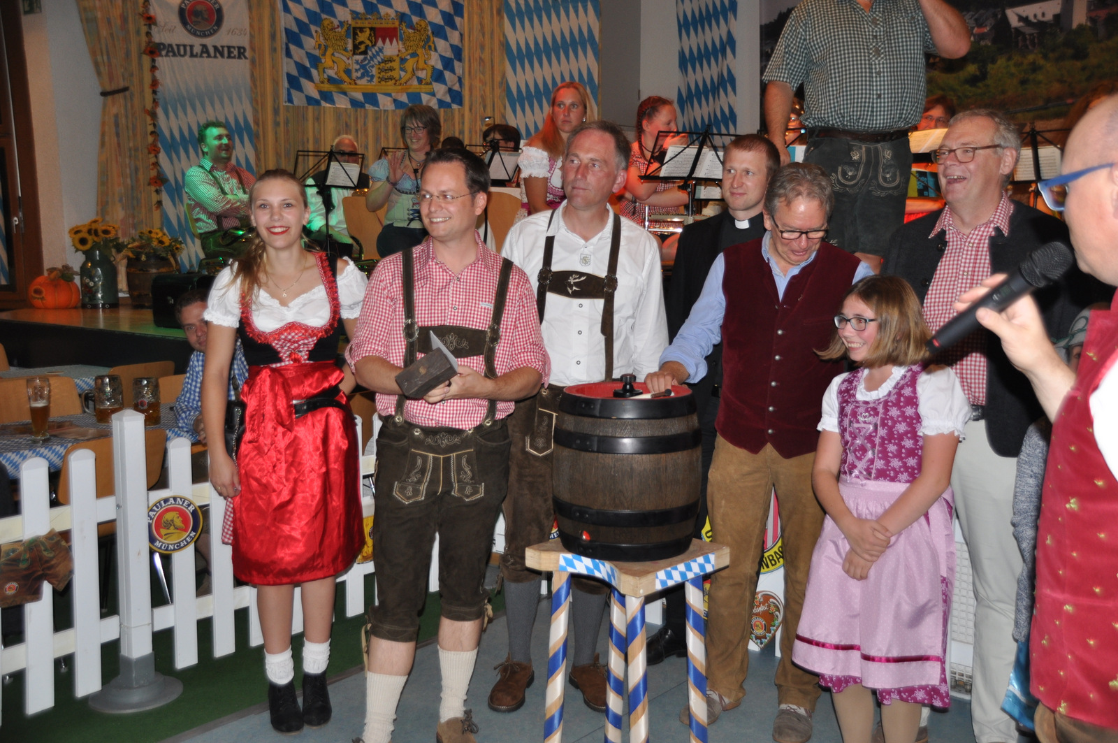 Bereits zum 17. Mal feierte der Musikverein mit seinen Gästen das beliebte Oktoberfest. Vor ausverkauftem Haus eröffnete Schirmherr Tobias Eckert, Landtagsabgeordneter der SPD, assistiert von den Landratskandidaten Michael Köberle, Jörg Sauer und Dr. Klaus Valeske, gemeinsam mit den Vorstandsmitgliedern Michael Wagner und Kai Müller sowie mit Kaplan Wach mit nur 2 Schlägen beim traditionellen Fassbieranstich das diesjährige Oktoberfest.
