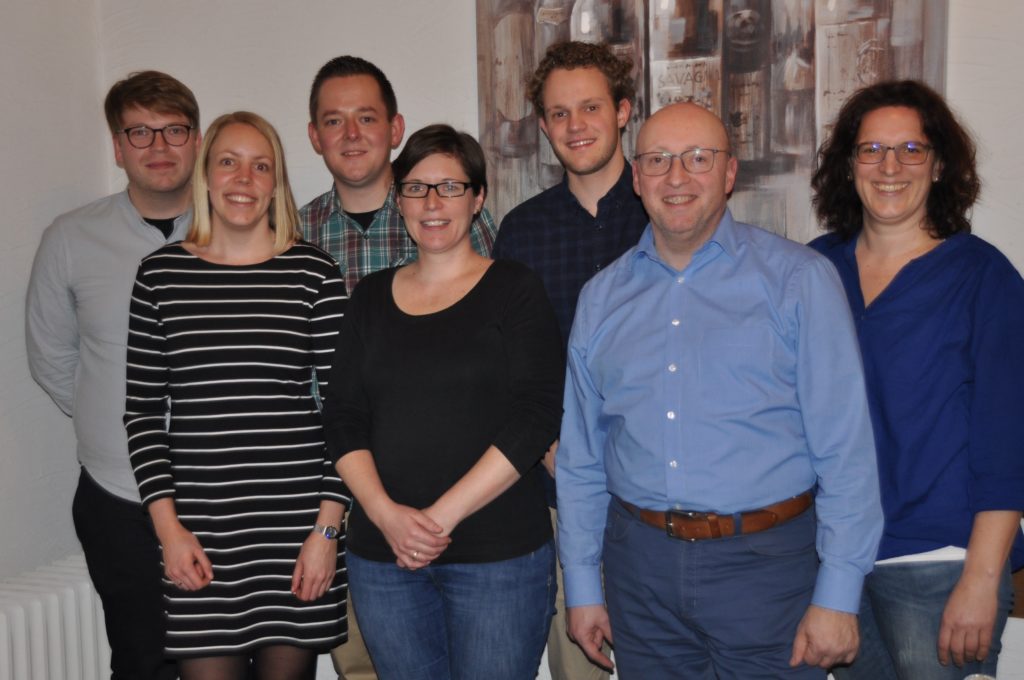 von links: Adrian Meilinger (2. Vorsitzender), Hannah Wagner (Beisitzer), Michael Wagner (Kassierer), Andrea Bäcker (Schriftführer), Felix Müller (Beisitzer Jugendorchester), Kai Müller (1. Vorsitzender), Stephanie Krämer-Ponto (Beisitzer)